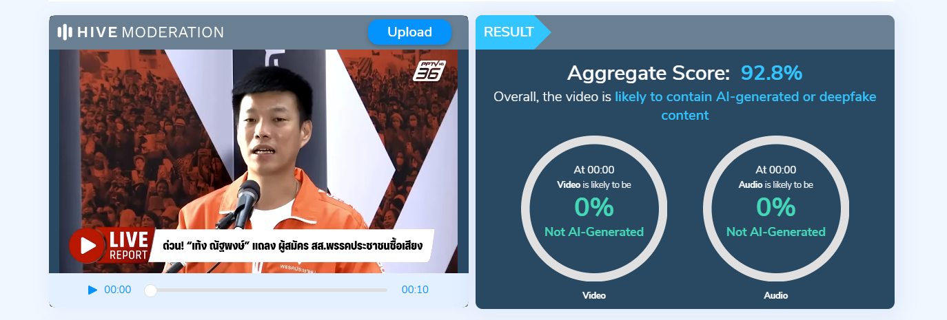 Furthermore, Thai PBS Verify reached out to the People’s Party for clarification. The party confirmed that the video is AI-created and completely fabricated.