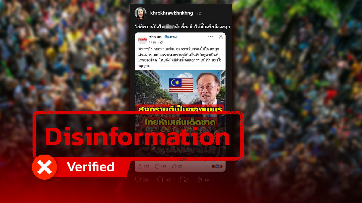 “Anwar [Ibrahim],” Prime Minister of Malaysia, has called on Thailand to stop celebrating Songkran because it originates in Cambodia as the first in the world. Therefore, Thailand has no right to celebrate Songkran unless Cambodia gives permission…”