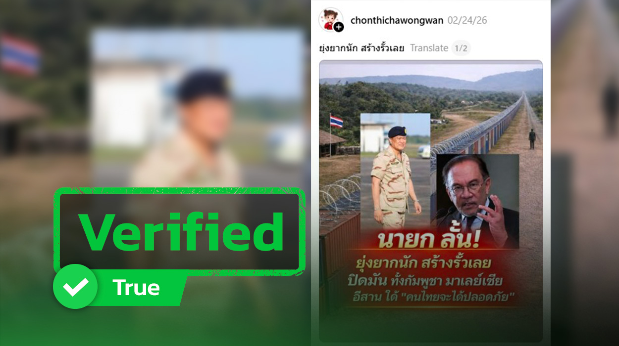Thai PBS Verify looked into the matter by using the keywords “Thai-Malaysia Fence” on Facebook. The search led to a report by TOP News, featuring a striking headline that.