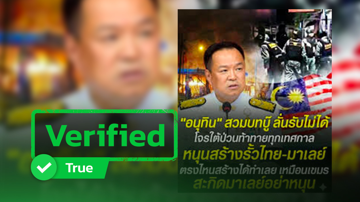 This post is an abbreviated version of remarks made by Mr. Anutin Charnvirakul during a press interview following a regional security meeting for five southern provinces in Songkhla. During the briefing, he discussed the conceptual framework for constructing a Thai-Malaysian border fence, intended as an extension of the existing Thai-Cambodian border project. However, the post failed to provide any formal citations or references regarding the origin of the news content it claimed to report.