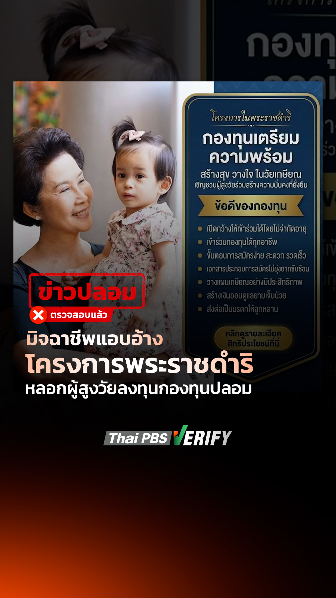 มิจฉาชีพแอบอ้างโครงการพระราชดำริ หลอกผู้สูงวัยลงทุนกองทุนปลอม : Thai PBS Verify