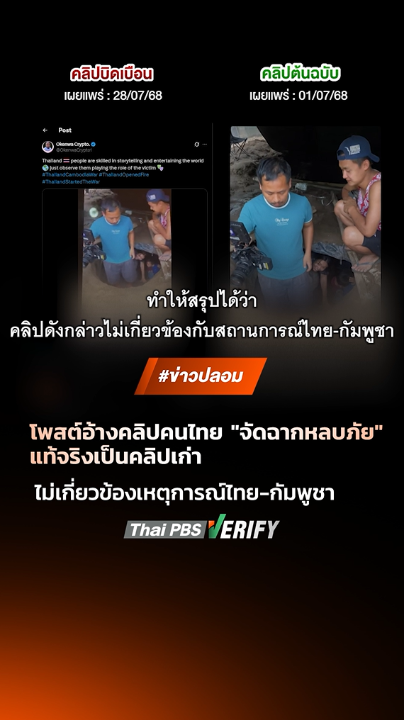 ตรวจสอบแล้ว: โพสต์อ้างคลิปคนไทย “จัดฉากหลบภัย” แท้จริงเป็นคลิปเก่าไม่เกี่ยวข้องเหตุการณ์ไทย-กัมพูชา