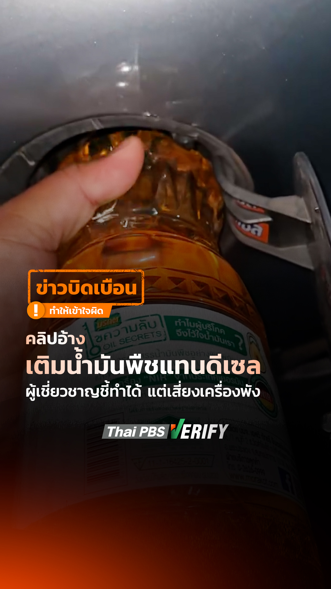 คลิปอ้างเติม “น้ำมันพืช” แทน “ดีเซล” ผู้เชี่ยวชาญชี้ทำได้ แต่เสี่ยงเครื่องพัง : Thai PBS Verify