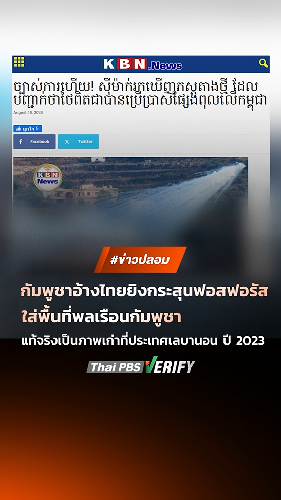ตรวจสอบแล้ว : สื่อกัมพูชาอ้างภาพไทยยิงกระสุนฟอสฟอรัสใส่พลเรือนกัมพูชา แท้จริงเป็นภาพเก่าอิสราเอลโจมตีเลบานอน ปี 2023