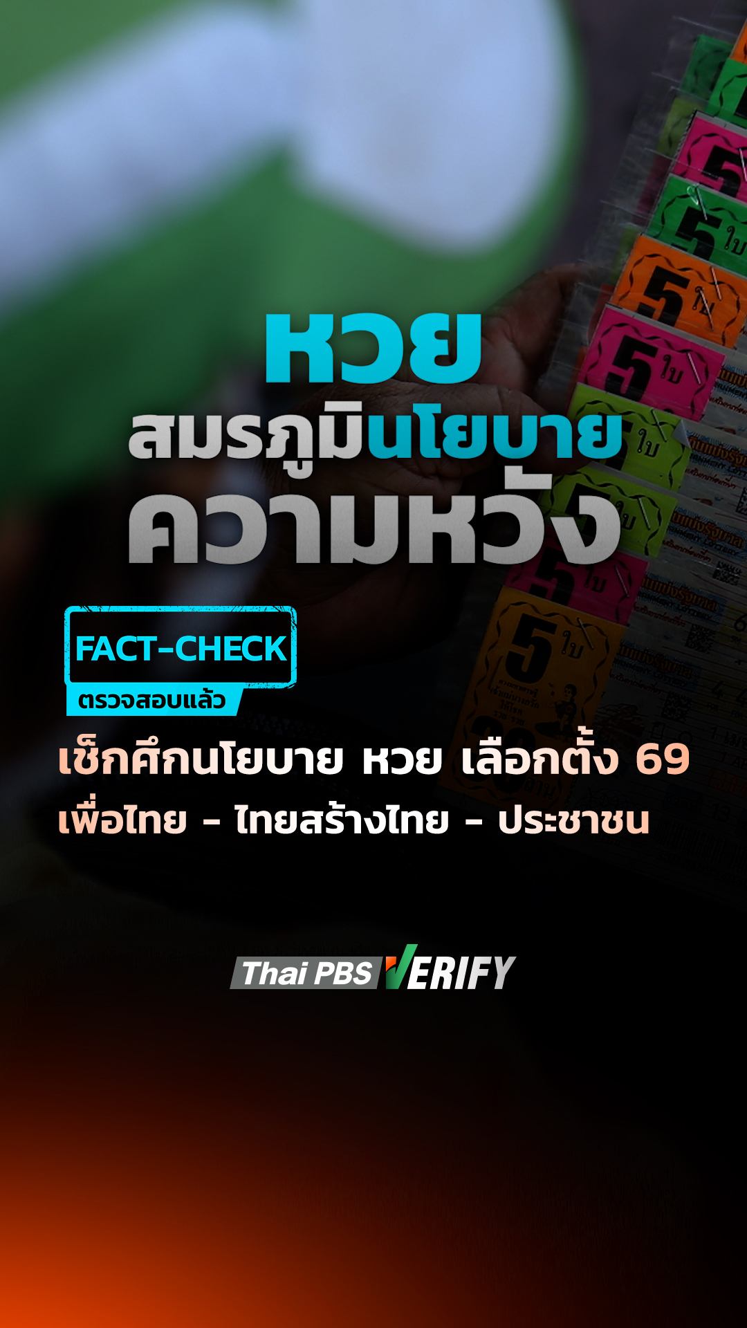 เช็กศึกนโยบาย “หวย” เลือกตั้ง 69 “เพื่อไทย – ไทยสร้างไทย – ประชาชน” : Thai PBS Verify
