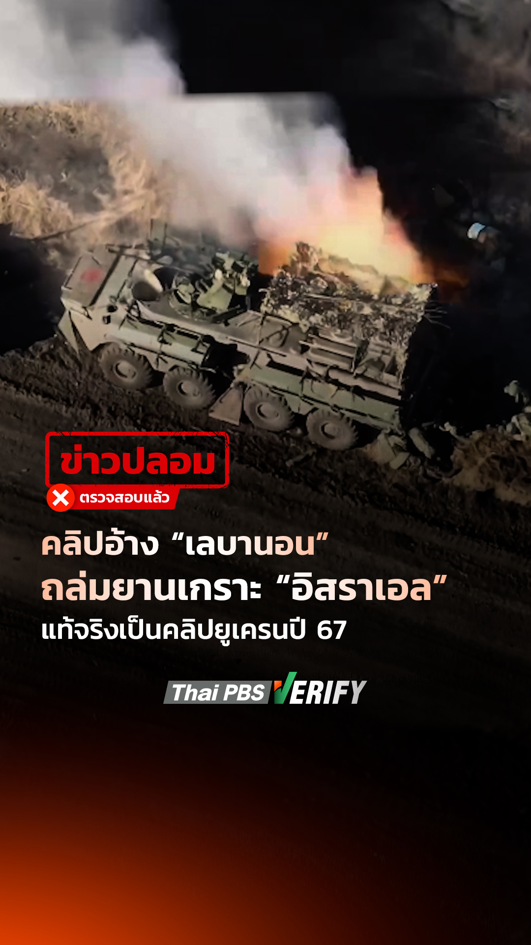 คลิปอ้าง “เลบานอน” ถล่มยานเกราะ “อิสราเอล” แท้จริงเป็นคลิปยูเครนปี 67 : Thai PBS Verify