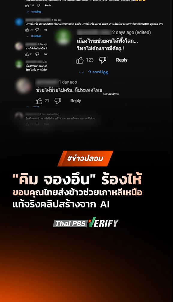 ตรวจสอบแล้ว: “คิม จองอึน” ร้องไห้ขอบคุณไทยส่งข้าวช่วย แท้จริงคลิปสร้างจาก AI