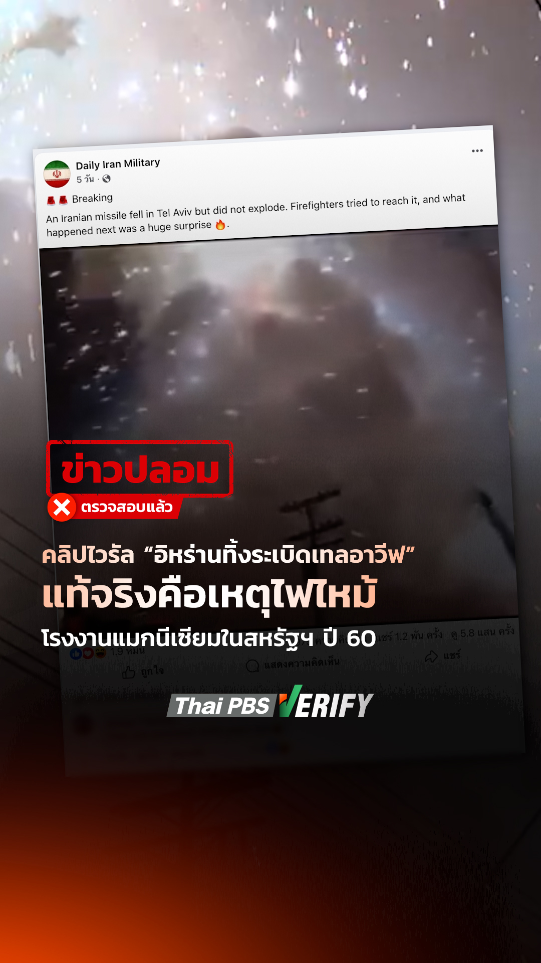 คลิปไวรัล “อิหร่านทิ้งระเบิดเทลอาวีฟ” แท้จริงคือเหตุไฟไหม้โรงงานแมกนีเซียมในสหรัฐฯ ปี 60 : Thai PBS Verify
