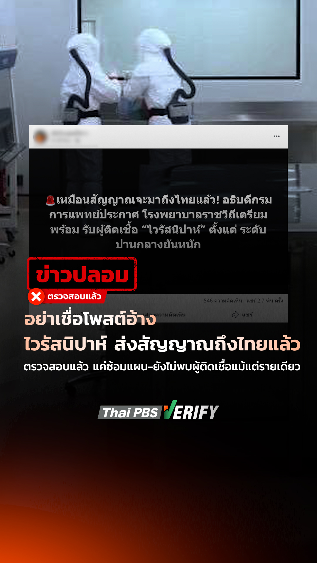 อย่าเชื่อโพสต์อ้าง “ไวรัสนิปาห์” บุกไทยแล้ว : Thai PBS Verify