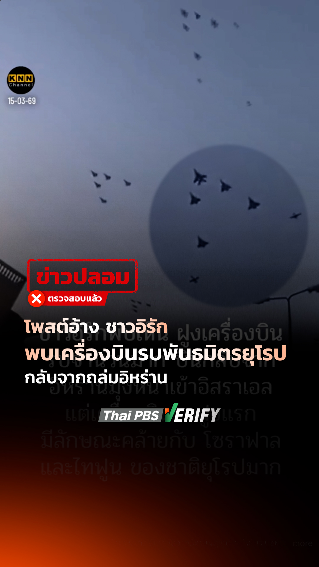 โพสต์อ้าง ชาวอิรักพบเครื่องบินรบพันธมิตรยุโรป กลับจากถล่มอิหร่าน : Thai PBS Verify