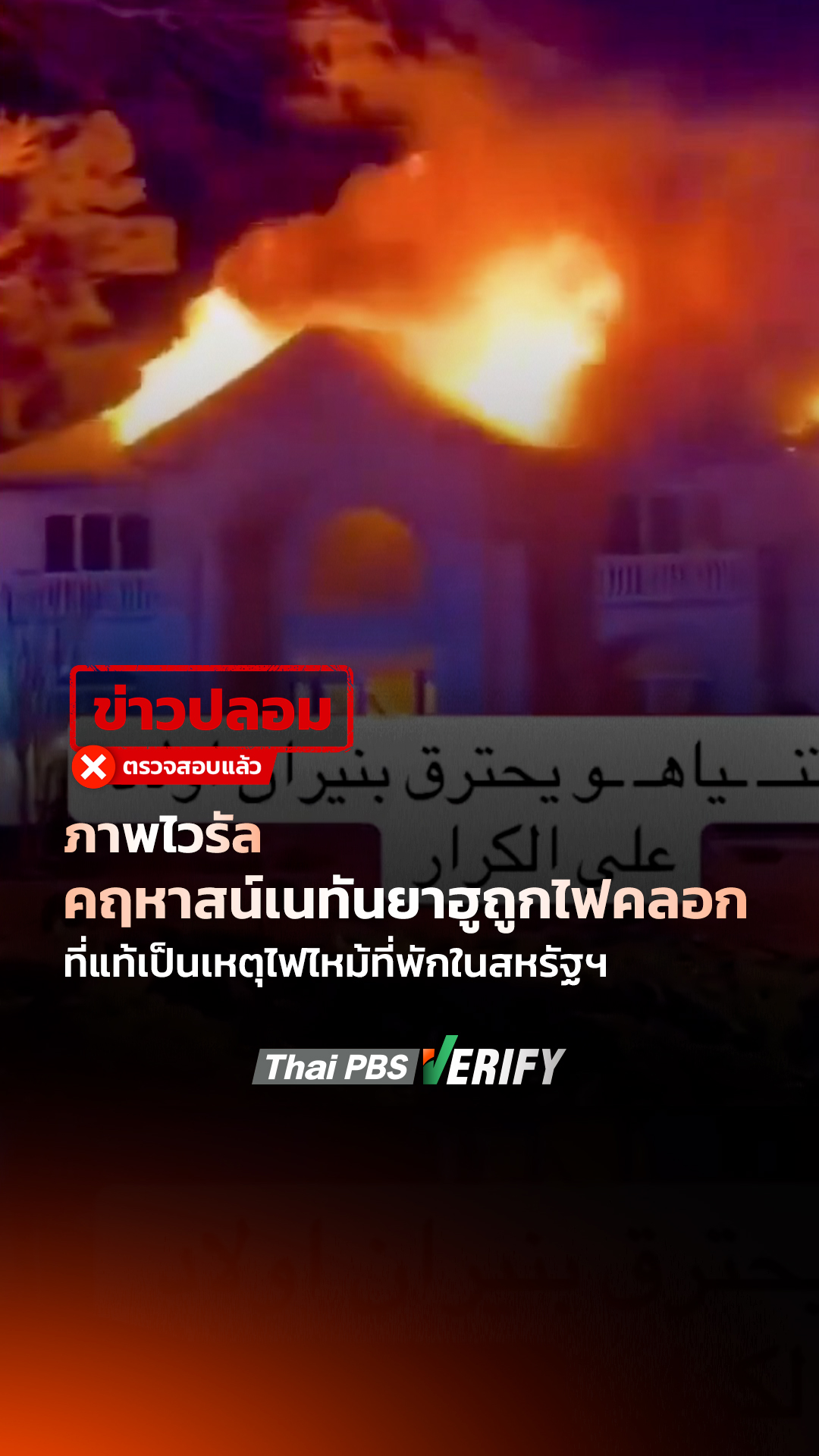 ภาพไวรัลคฤหาสน์เนทันยาฮูถูกไฟคลอก ที่แท้เป็นเหตุไฟไหม้ที่พักในสหรัฐฯ : Thai PBS Verify