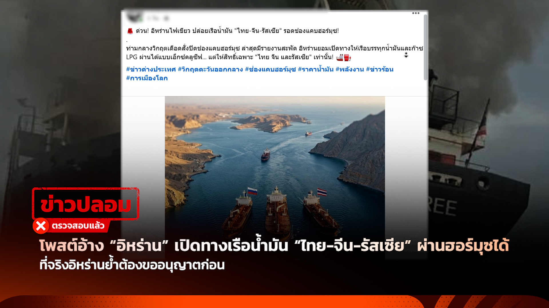 ข่าวปลอม “อิหร่าน” เปิดทางเรือน้ำมัน “ไทย-จีน-รัสเซีย” ผ่านฮอร์มุซได้แบบ Exclusive เพราะสัมพันธ์ 400 ปี