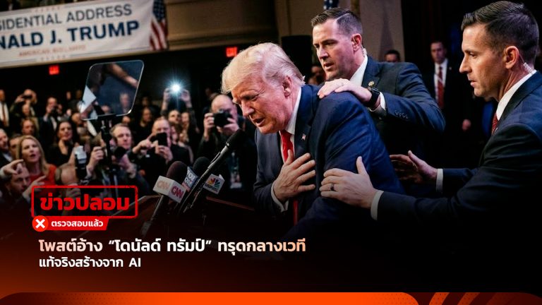 โพสต์อ้าง “โดนัลด์ ทรัมป์” ทรุดกลางเวที แท้จริงสร้างจาก AI